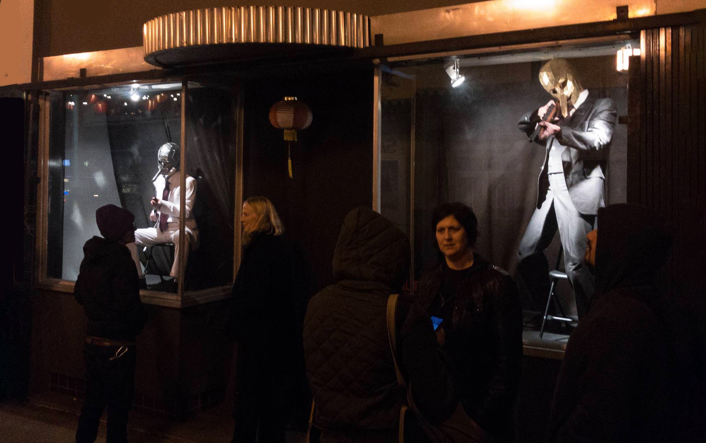 Muy bien lograda técnicamente, la perspectiva armada en ese espacio daba lugar a una excelente relación entre lo escenográfico y lo actuado. Los brazos y manos reales que salían de las ventanas, el gran pastel, la máscara espejada del personaje confinado dentro de ese magnífico espacio, todo estaba tan bien calibrado que uno sucumbía a la fantasía, como de alguna forma invitaba Oscar Wilde desde el título del performance. Y la vereda llena de gente en la noche, sucediéndose para poder ver la acción incesante detrás del vidrio, nos transformaba en otros, que al igual que las manos, nos volvíamos parte de la performance y sus imágenes especulares.