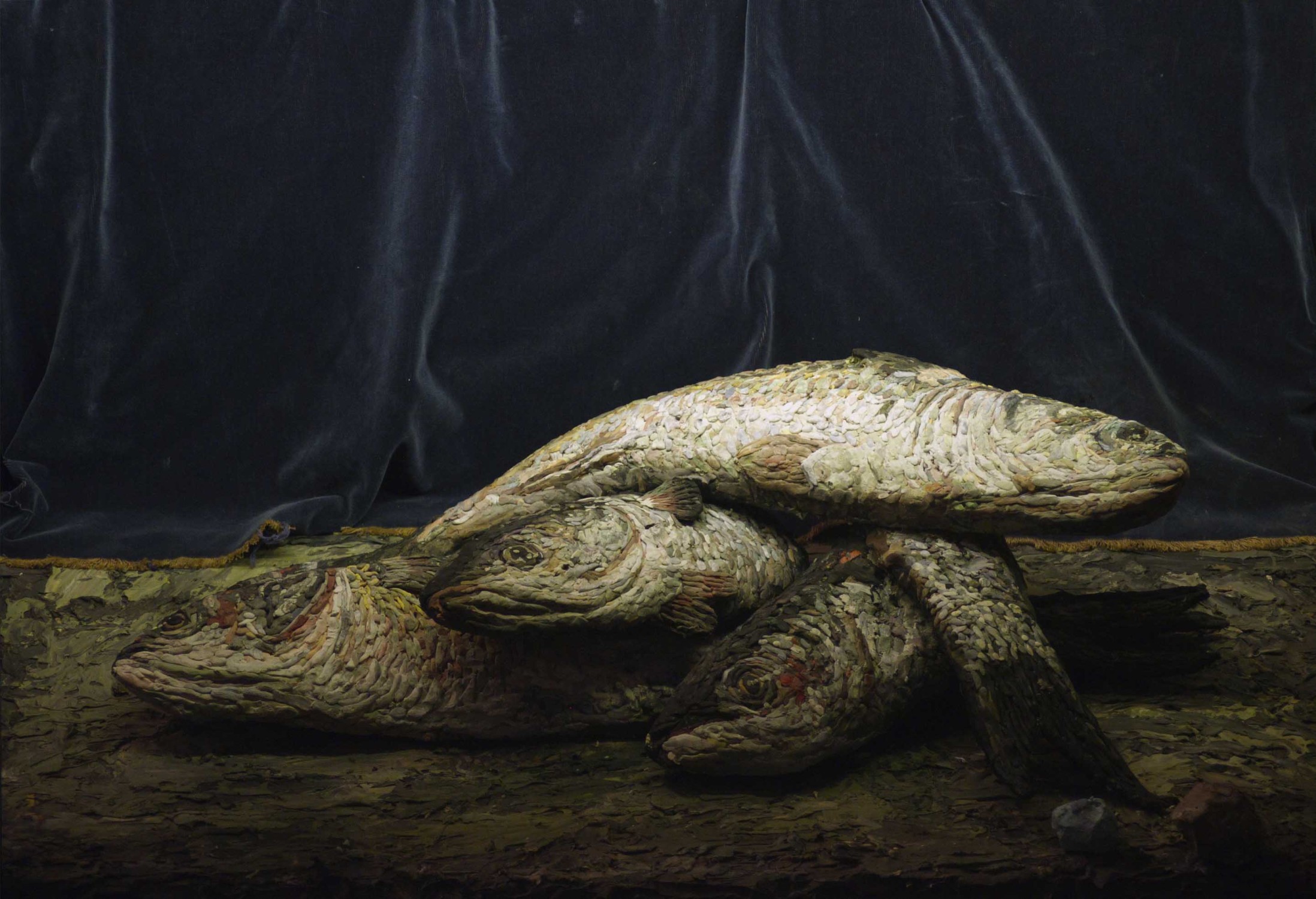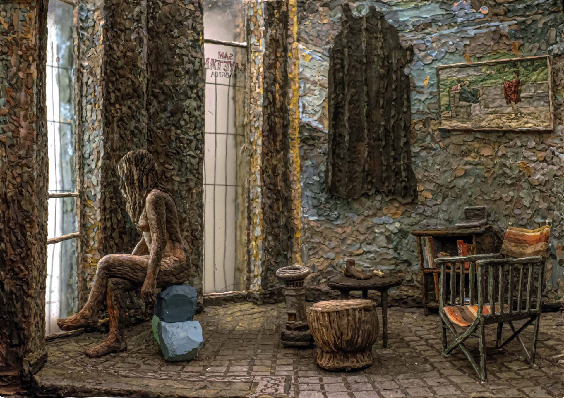 [...] Creo que aparte de la imagen artística, la humanidad no ha inventado nada de manera desinteresada. Y quizás por eso realmente el sentido de la existencia humana consista en la creación de obras de arte, en el acto artístico, ya que este no posee una meta y es desinteresado. Quizás se demuestre precisamente en ello que hemos sido creados a imagen y semejanza de Dios. Estamos subvirtiendo las naturalezas muertas de la pobreza y la abundancia que te enviamos hace un tiempo, poblándolas de pequeños fantasmas inspirados en la novela gráfica de Max Ernst La mujer 100 cabezas, que a su vez estaba realizada con collages de xilografías de infinitas procedencias. También experimentando con un cuadro pintura-pintura de una escena solitaria y psicológica de una mujer tendida en una cama enfrentándose consigo misma y, en su espalda, se abre literal y realmente un túnel de cincuenta centímetros de profundidad, una cita a la nave mental de la película Solaris de Tarkovski.
